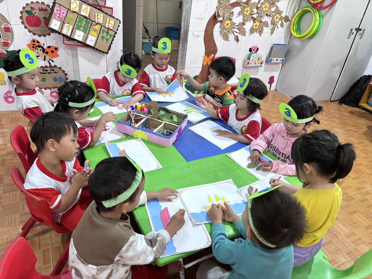 🌈 “Một giờ học ý nghĩa: rèn kỹ năng dán, vẽ, tô màu, giúp bé yêu thích và biết tận dụng nguyên vật liệu thiên nhiên.”