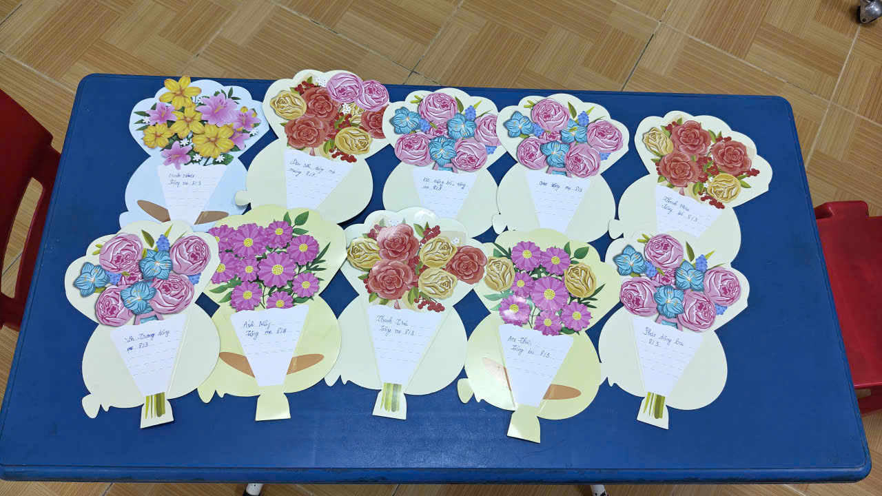 – Trong buổi trải nghiệm, dưới sự hướng dẫn của cô, các em học sinh đã được tự tay l trang trí tấm thiệp tặng mẹ. Tuy còn vụng về nhưng từng hình dán đều thể hiện sự cố gắng và tình cảm chân thành của các em. Không khí lớp học trở nên sôi nổi, vui tươi khi các em cùng nhau trao đổi ý tưởng, giúp đỡ nhau hoàn thành tấm thiệp của mình.
