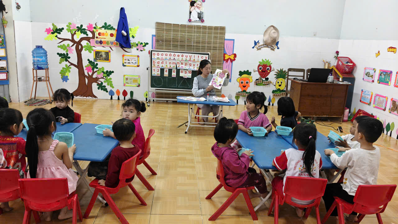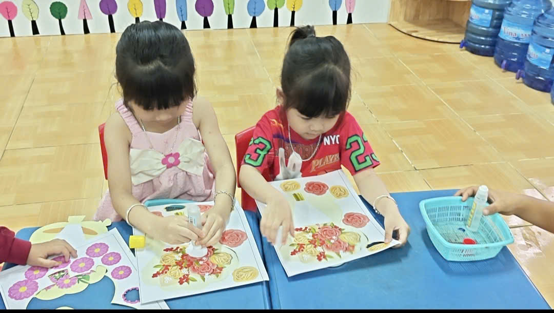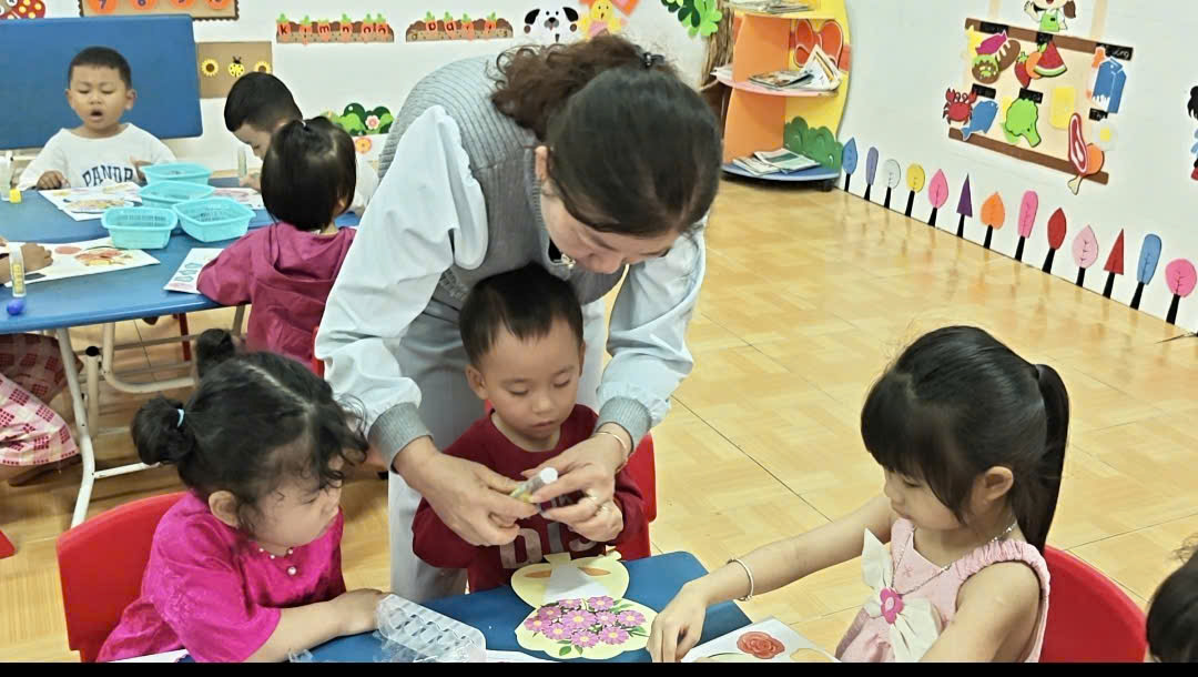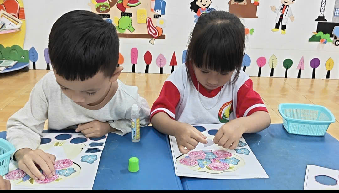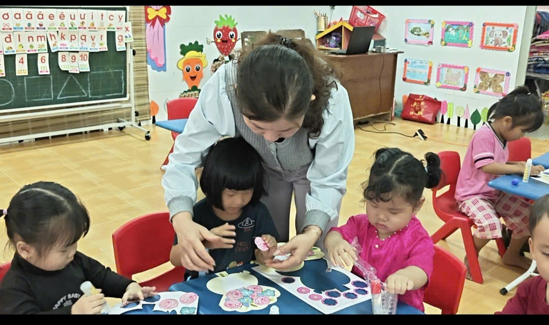 ( Các bạn nhỏ cũng tích cực làm với sự hỗ trợ của cô)